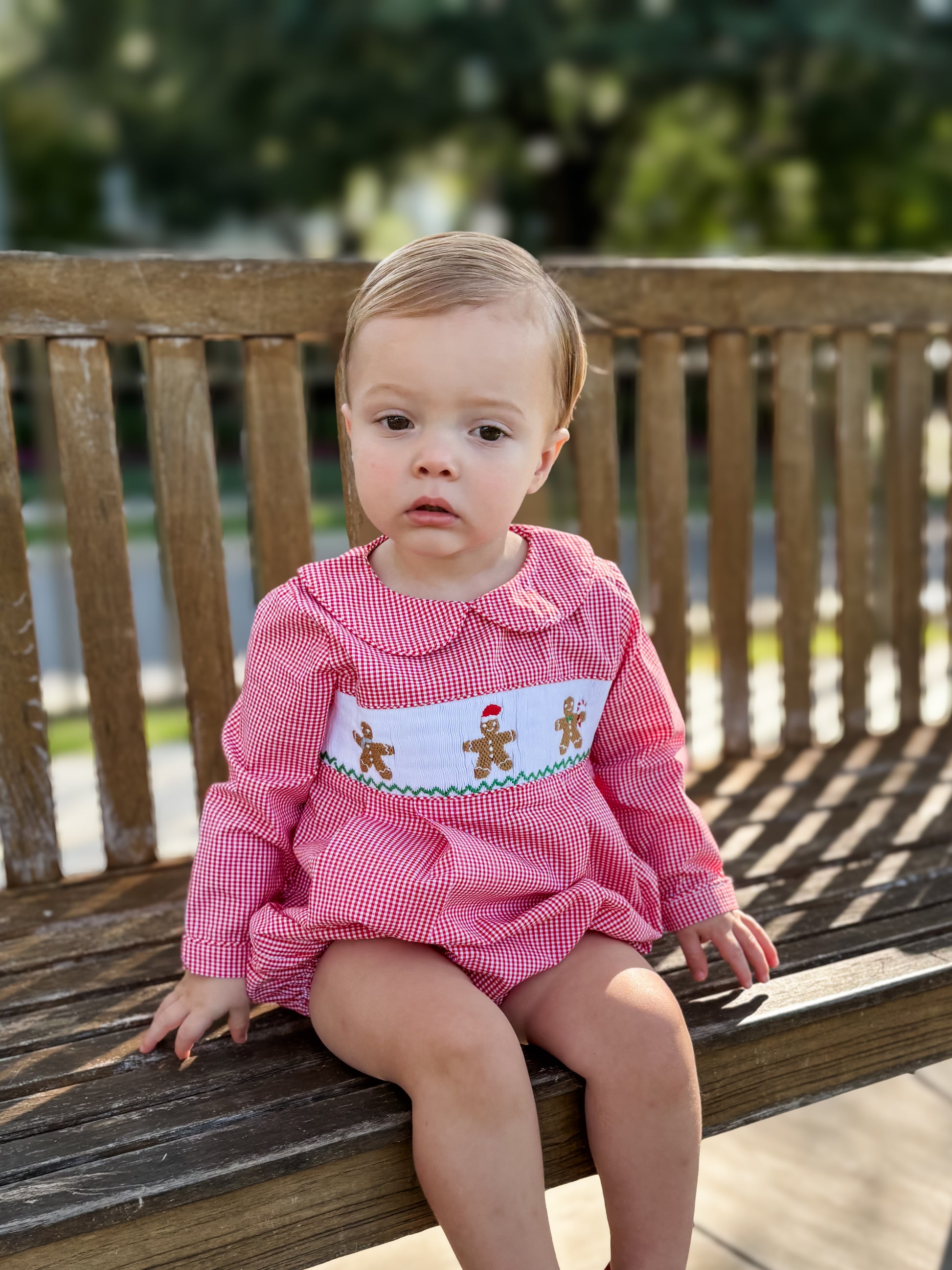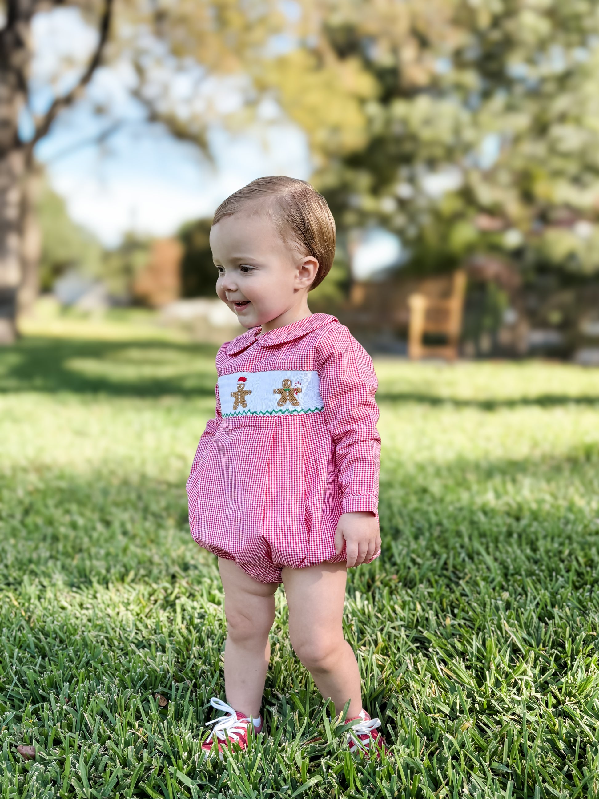 Sweet as a holiday cookie and just as delightful, The Baker Bubble is a festive favorite for the season! Featuring hand-smocked gingerbread friends and trimmed in classic holiday hues, it’s the perfect blend of timeless tradition and playful charm. Whether he's baking with Grandma, trimming the tree, or posing for Christmas photos, this darling bubble brings the magic of the season to life! Pair with the Ginger collection for sister!