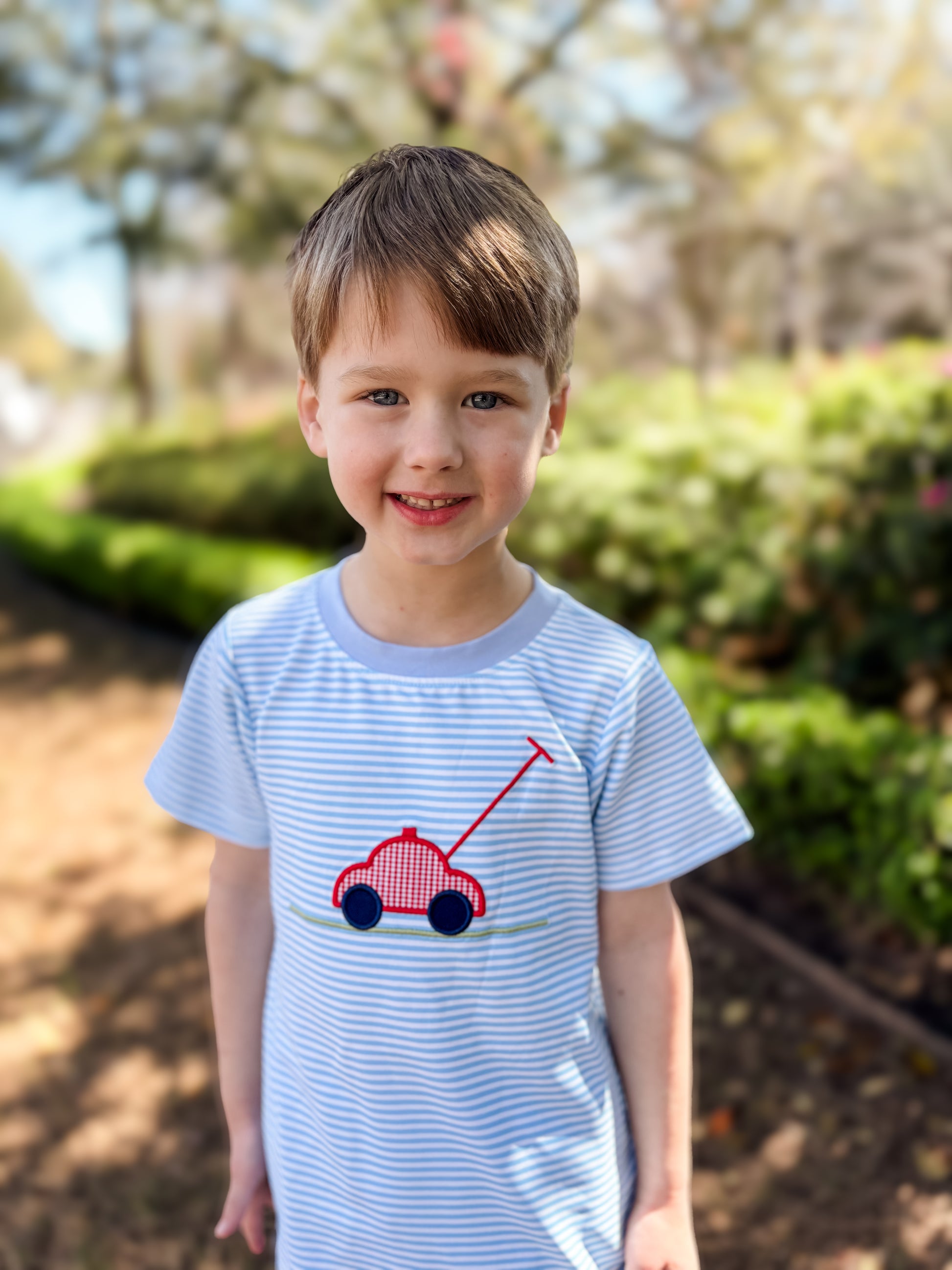 Ready for backyard adventures! The Beau features a sweet lawn mower appliqué, perfect for sunny days, helping Dad in the yard, and all the summertime fun!