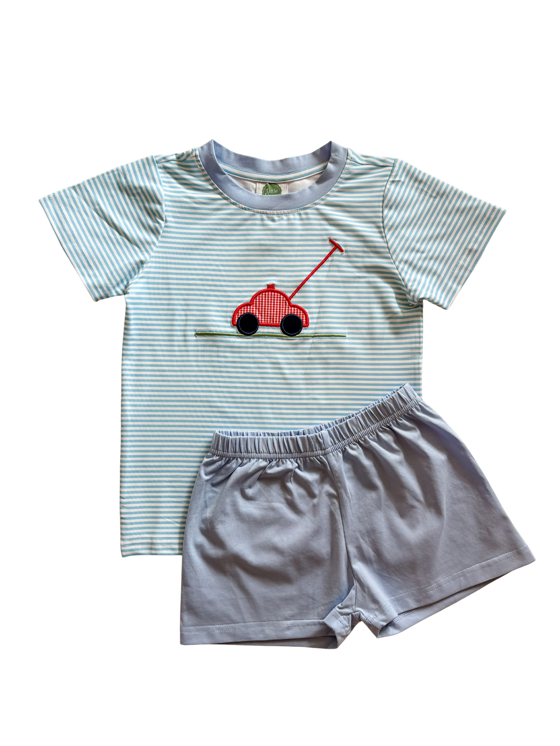 Ready for backyard adventures! The Beau features a sweet lawn mower appliqué, perfect for sunny days, helping Dad in the yard, and all the summertime fun!