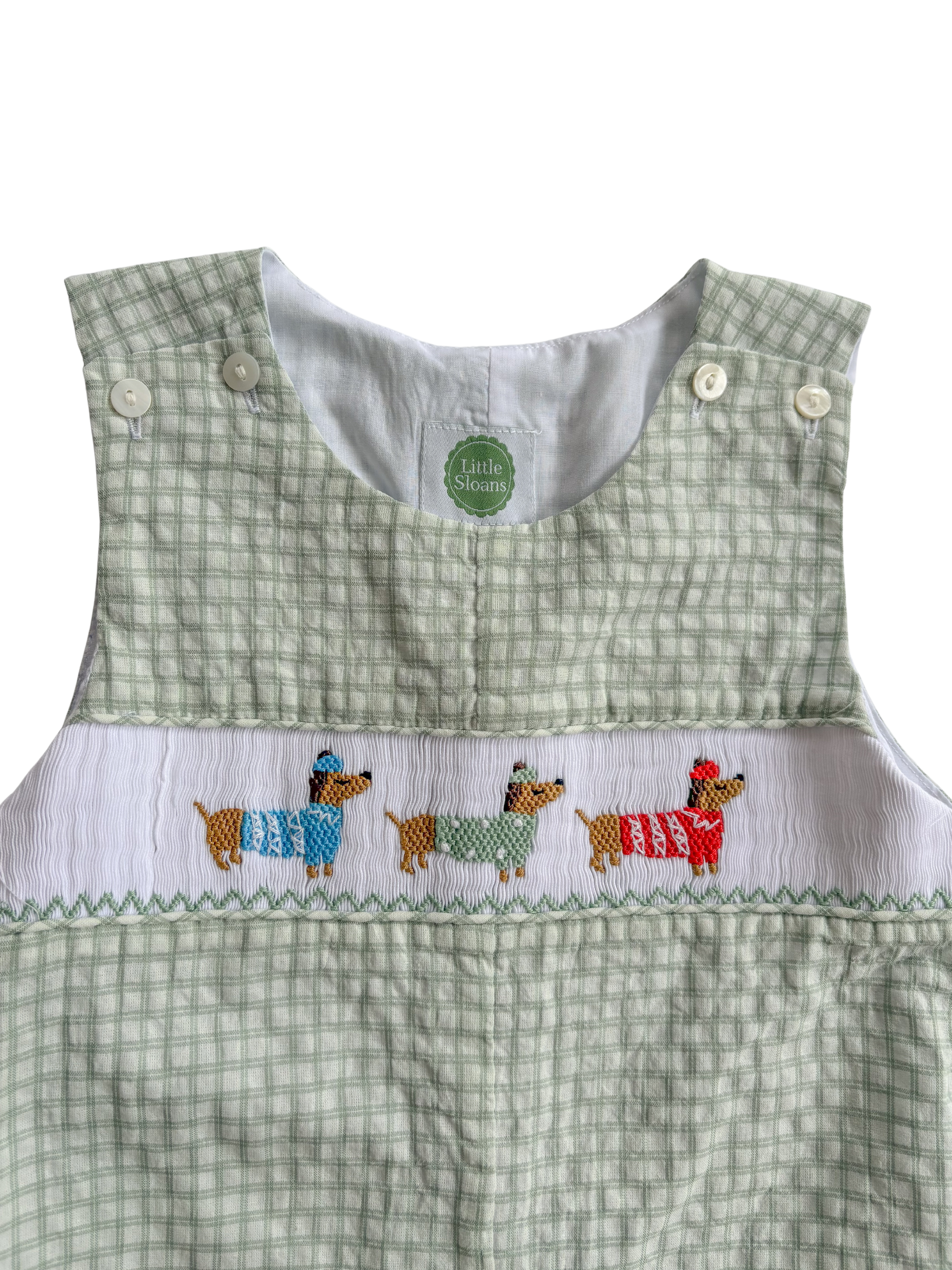 How fun are these winter wieners?? We love these cozy dachshunds, and we know you will too! The Pretzel and The Greta were inspired by the book "Pretzel" by Margret Rey - a precious story if you haven't already read it!! We love the matching bubble and t-shirt set for brothers and the bubble and dress for sisters as well!